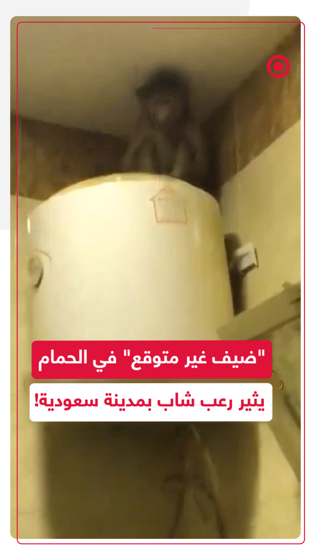 مشاهد متداولة توثق لحظة عثور شاب سعودي على قرد داخل حمام منزله في منطقة عنيزة، حيث كان القرد مختبئا فوق سخان المياه.