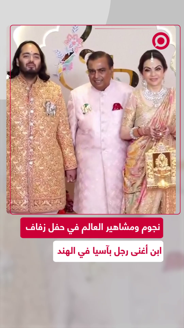 ألمع نجوم الفن والسياسة والرياضة يحضرون حفل زفاف الابن الأصغر لأغنى رجل في آسيا الملياردير الهندي موكيش أمباني، يمتد الحفل لمدة أربعة أيام، ومن بين الأسماء التي حضرته: ريهانا وجاستن بيبر ورئيسي وزراء بريطانيا السابقين توني بلير وبوريس جونسون، والرئيس التنفيذي لشركة أرامكو السعودية أمين ناصر، والمغنية أديل، ولانا ديل ري، ودريك، وديفيد بيكهام، كيم كارداشيان وجون سينا وغيرهم الكثير.