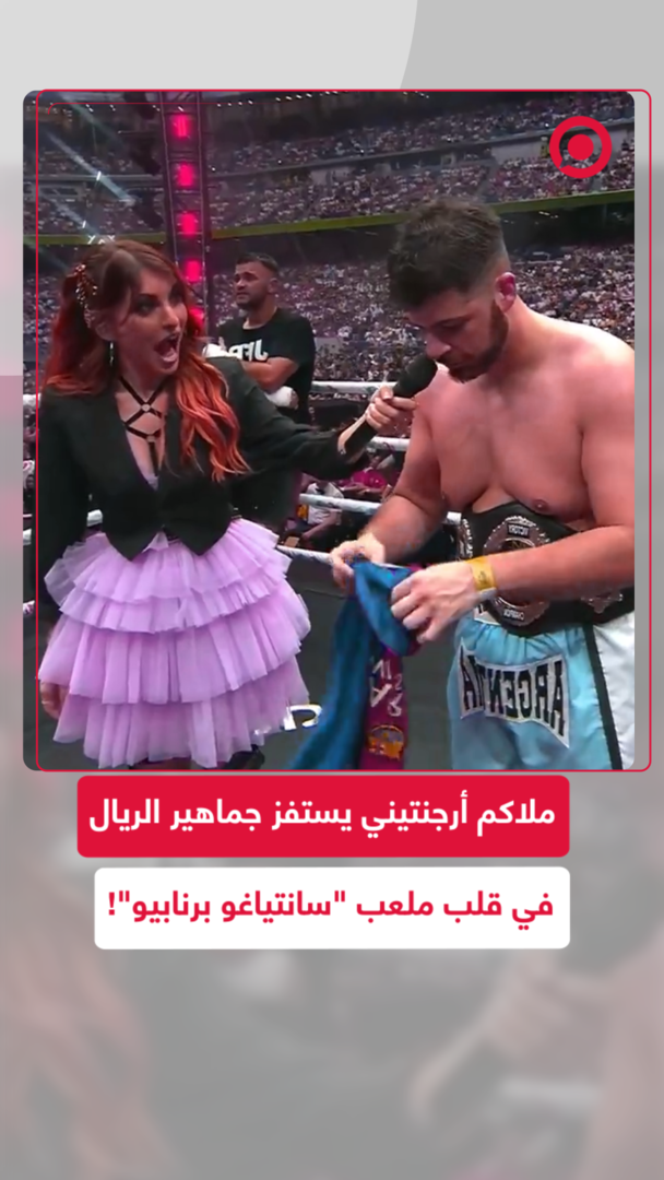 رفع قميص ميسي في قلب ملعب "سانتياغو برنابيو".. مشاهد للملاكم الأرجنتيني لاوتارو ديل كامبو الشهير بـ"لا كوبرا"و الذي أثار سخط جماهير ريال مدريد باحتفال مستفز، في معقل فريقهم "سانتياغو برنابيو"، وذلك عقب رفعه لقميص ليونيل ميسي نجم فريق برشلونة سابقا وسط صافرات استهجان كبيرة.