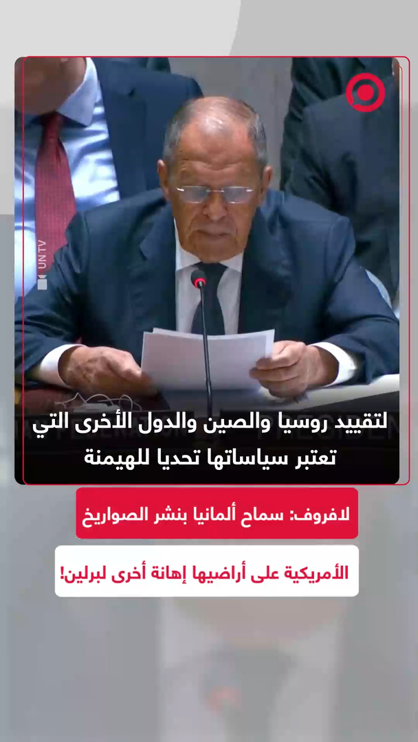 "واشنطن تفعل كل ما يمكن لنسف أسس التعاون بين روسيا وأوروبا".. وزير الخارجية الروسي سيرغي لافروف يؤكد أن تصرفات واشنطن العدوانية تهدف لعرقلة التعاون بين روسيا وأوروبا، كما انتقد الحكومة الألمانية لخضوعها الكامل للولايات المتحدة وقبولها نشر الصواريخ الأمريكية على أراضيها.