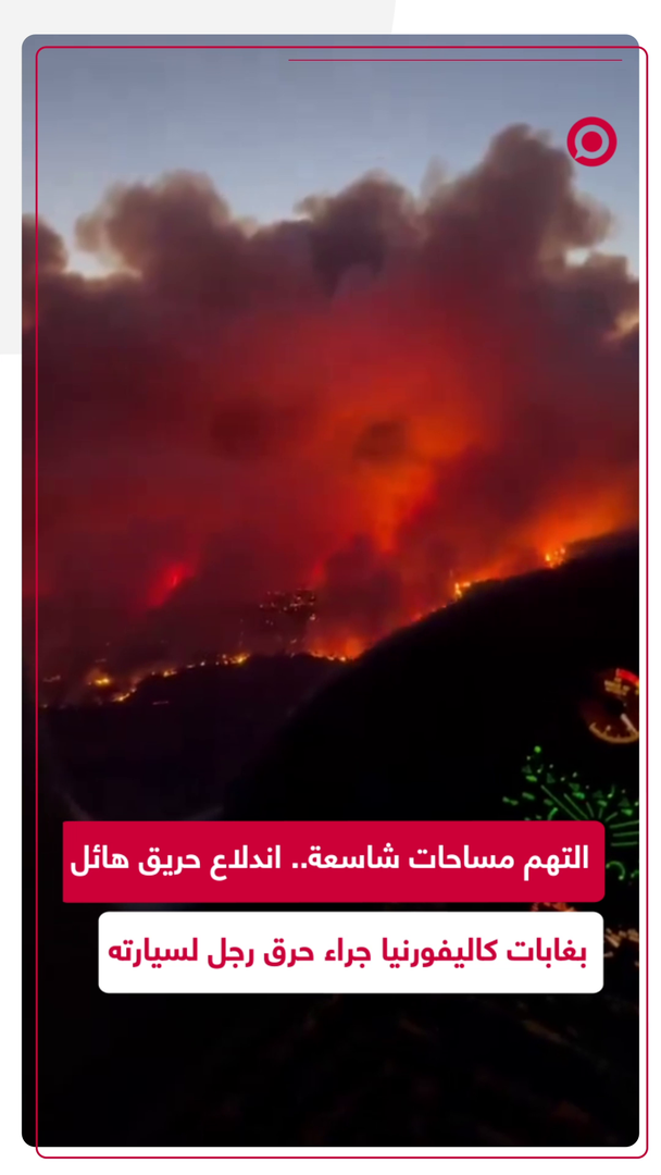 اندلاع حرائق غابات هائلة في ولاية كاليفورنيا بسبب إحراق رجل لسيارته