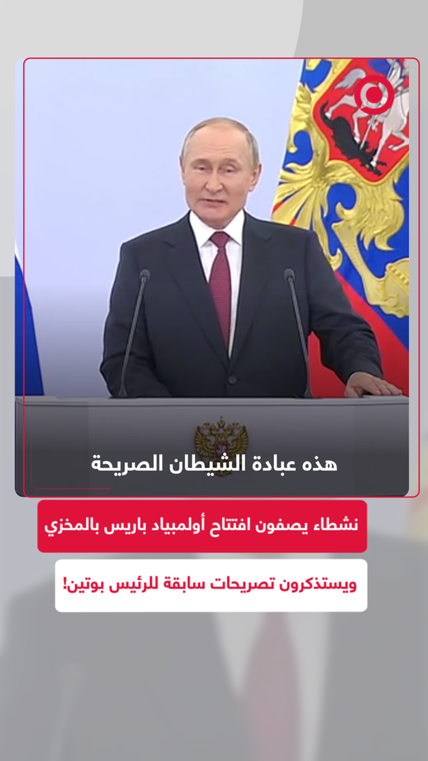 نشطاء على مواقع التواصل الاجتماعي يصفون حفل افتتاح أولمبياد باريس بـ"المخزي"، ويستذكرون خطابا سابقا للرئيس الروسي فلاديمير بوتين، أكد فيه أن دكتاتورية النخب الغربية تنكر تماما الإنسان والإيمان والقيم وتكتسب سمات الشيطانية.