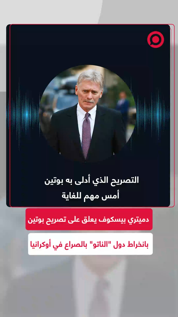 المتحدث باسم الكرملين دميتري بيسكوف يعلق على تصريح الرئيس الروسي فلاديمير بوتين بشأن انخراط دول "الناتو" بالصراع بشكل مباشر إذا ما تم ضرب العمق الروسي.