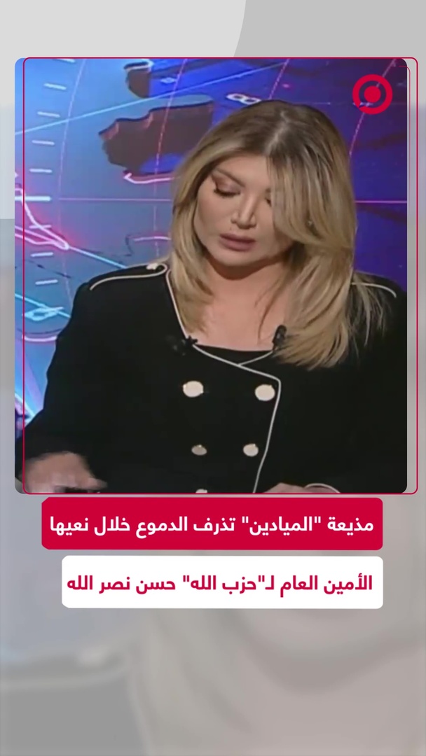 مذيعة قناة "الميادين" اللبنانية تذرف الدموع أثناء نعيها الأمين العام لـ"حزب الله" حسن نصر الله