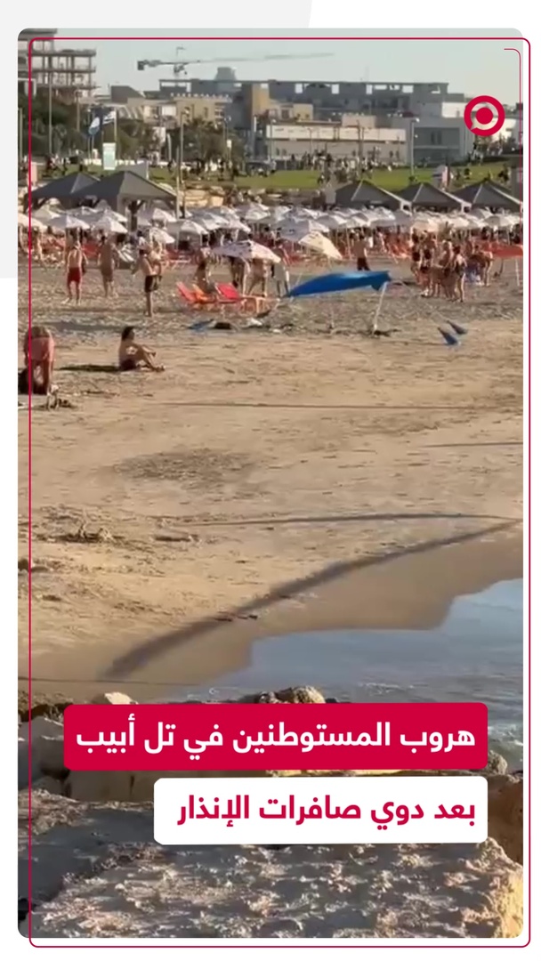 هروب المستوطنين من شاطئ في تل أبيب بعد دوي صافرات الإنذار