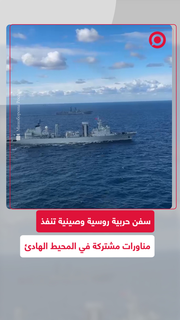 سفن حربية تابعة للأسطولين البحريين الروسي والصيني تنفذ مناورات ضمن إطار الدوريات المشتركة في منطقة آسيا والمحيط الهادئ.