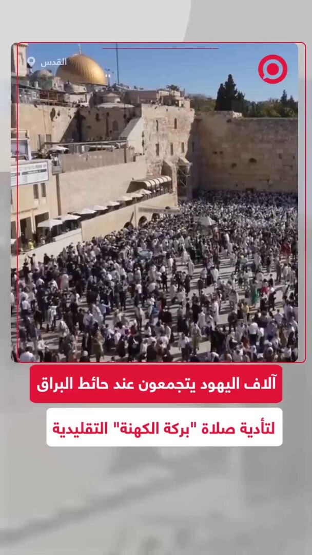 آلاف المصلين اليهود يتجمعون عند حائط البراق في القدس لتأدية صلاة "بركة الكهنة" التقليدية، وبحسب الديانة اليهودية "يعود تاريخ هذه الطقوس إلى أكثر من 2500 عام مضت عندما كان معبد الملك سليمان قائما في ذات الموقع، حيث يتم تأدية هذه الصلاة ثلاث مرات سنويا لمباركة الشعب اليهودي".