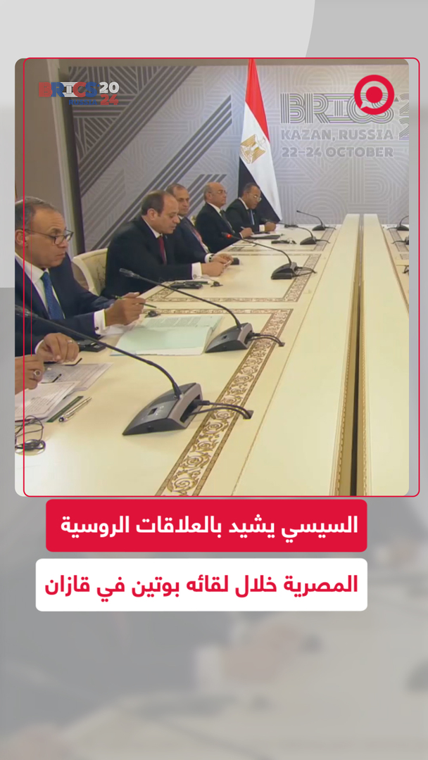 الرئيس المصري عبدالفتاح السيسي يشيد بالعلاقات الروسية المصرية ويثني على دور روسيا بالمساهمة في المشاريع التنموية المصرية، وذلك خلال لقائه بالرئيس الروسي فلاديمير بوتين على هامش قمة "بريكس" 2024 في قازان.