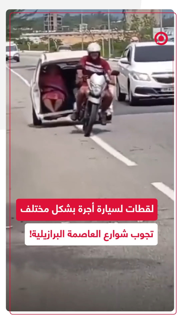 مقطع فيديو متداول على وسائل التواصل الاجتماعي، لسيارة أجرة في العاصمة البرازيلية، نصفها دراجة نارية ونصفها الآخر سيارة.