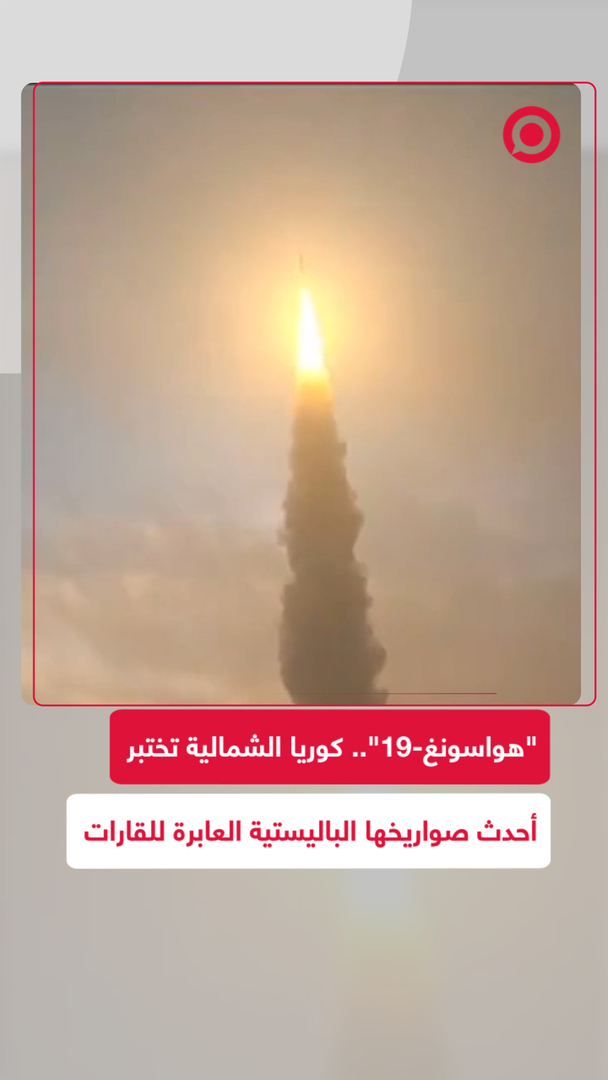 كوريا الشمالية تؤكد نجاح اختبار أحدث صواريخها الباليستية العابرة للقارات طراز "هواسونغ-19" باتجاه بحر اليابان.