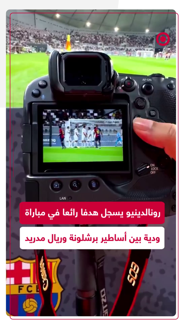 الساحر رونالدينيو يبدع في كلاسيكو الأساطير.. مشاهد لنجم كرة القدم البرازيلي رونالدينيو، يسجل هدفا رائعا من ركلة حرة خلال المباراة الودية التي جمعت بين أساطير برشلونة وأساطير ريال مدريد.