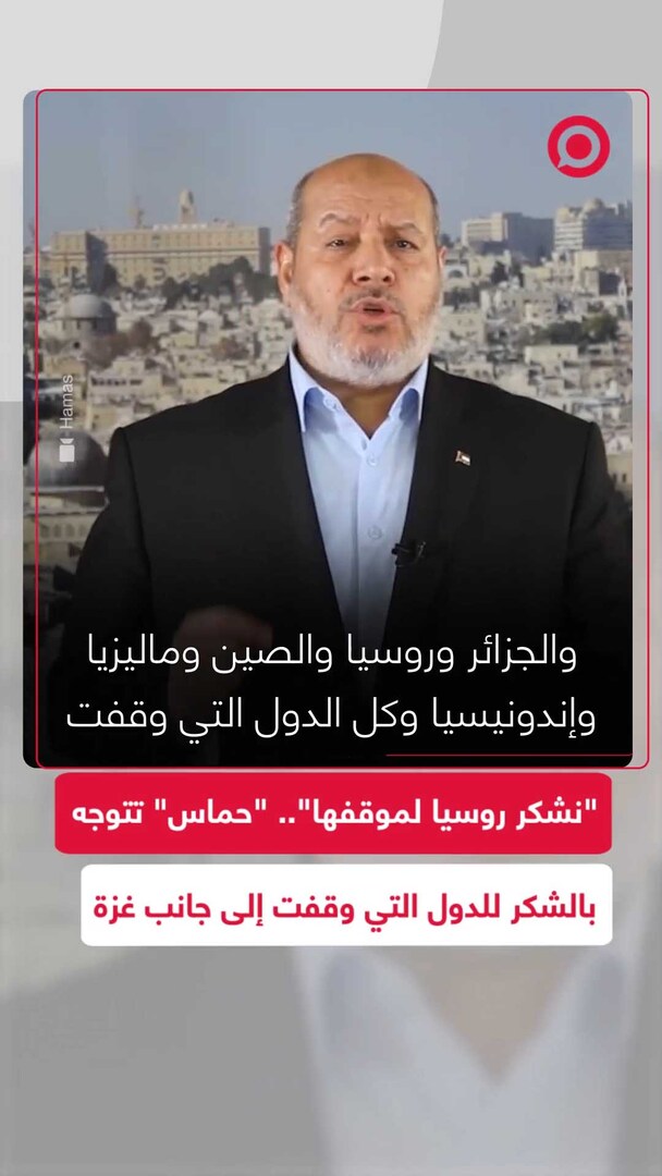 "ونخص بالشكر الأخوة في تركيا وجنوب إفريقيا والجزائر وروسيا والصين وماليزيا وإندونيسيا "..عضو المكتب السياسي لحركة "حماس" ورئيس الحركة في غزة، خليل الحية، يتوجه بالشكر في خطابه، بعد التوصل لاتفاق تبادل الأسرى ووقف إطلاق النار، للدول التي وقفت بجانب الشعب الفلطسيني