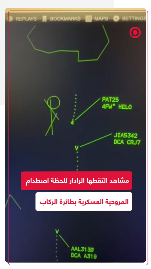 شاهد.. التقاط حادث تصادم بين طائرة ركاب ومروحية عسكرية أمريكية قرب مطار واشنطن بالولايات المتحدة على رادار مراقبة الحركة الجوية.