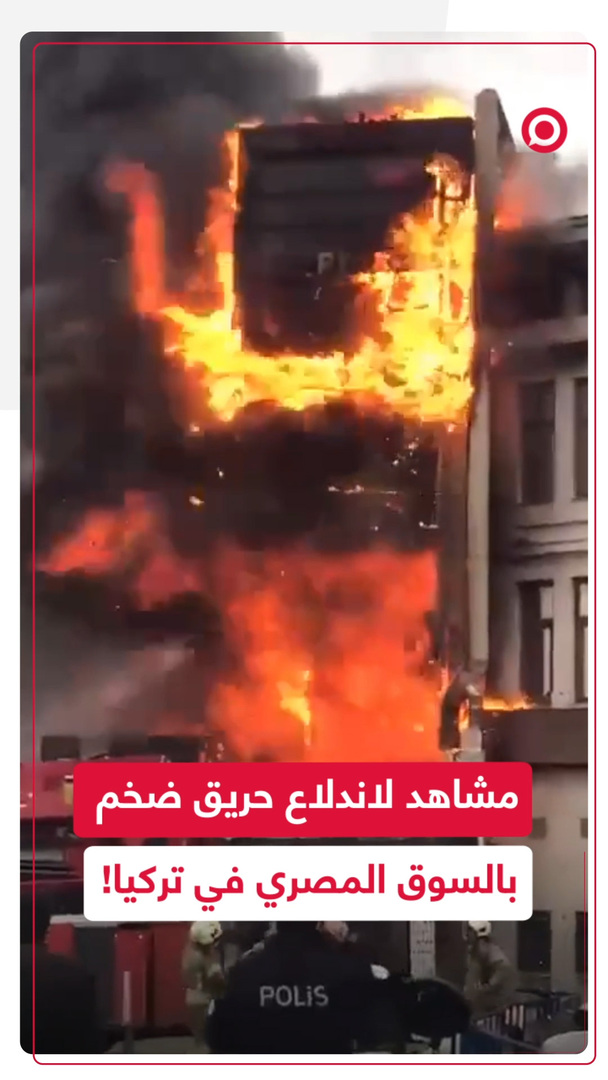 مشاهد تظهر ألسنة النار المتصاعدة جراء اندلاع حريق بالسوق المصري التاريخي في مدينة إسطنبول التركية حيث لا تزال فرق الإطفاء تواصل جهودها للسيطرة على الحريق.