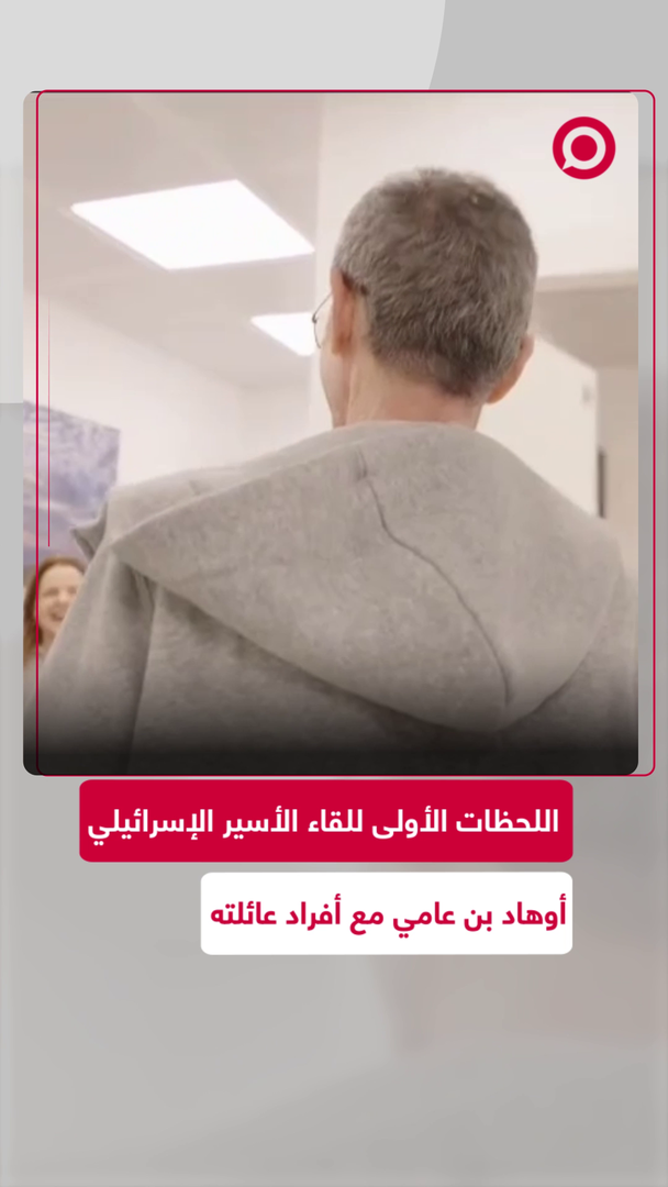 المشاهد الأولى للقاء الأسير الإسرائيلي أوهاد بن عامي مع عائلته بعد أن قام الصليب الأحمر بتسليمه للجيش الإسرائيلي عقب الإفراج عنه من قطاع غزة.