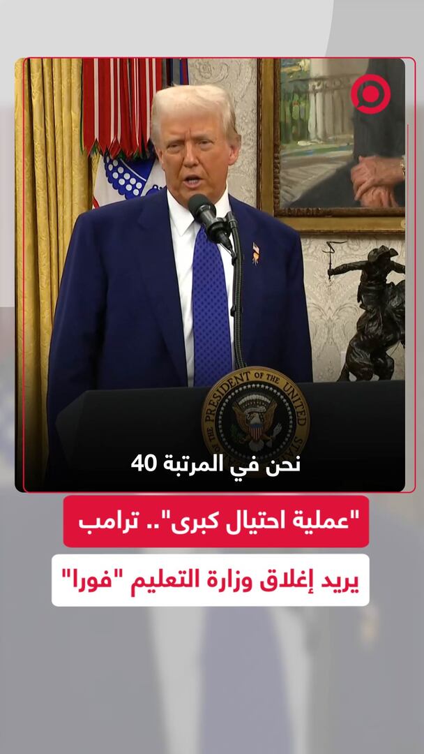 "عملية احتيال كبرى".. الرئيس الأمريكي دونالد ترامب يريد "إغلاق وزارة التعليم الأميركية فورا" بعد احتلال الولايات المتحدة المرتبة الأربعين بالنسبة للتعليم، واحتلال الصين المرتبة الخامسة