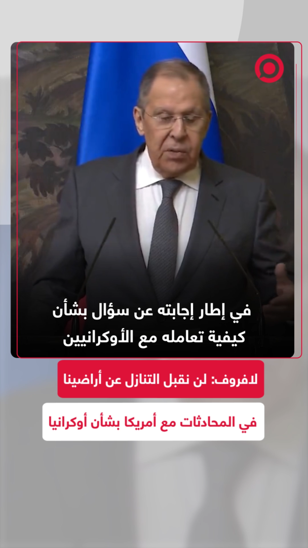 وزير الخارجية الروسي سيرغي لافروف، يؤكد أن روسيا لن تقبل التنازل عن أراضيها في المحادثات مع الولايات المتحدة بشأن تسوية الأزمة الأوكرانية.