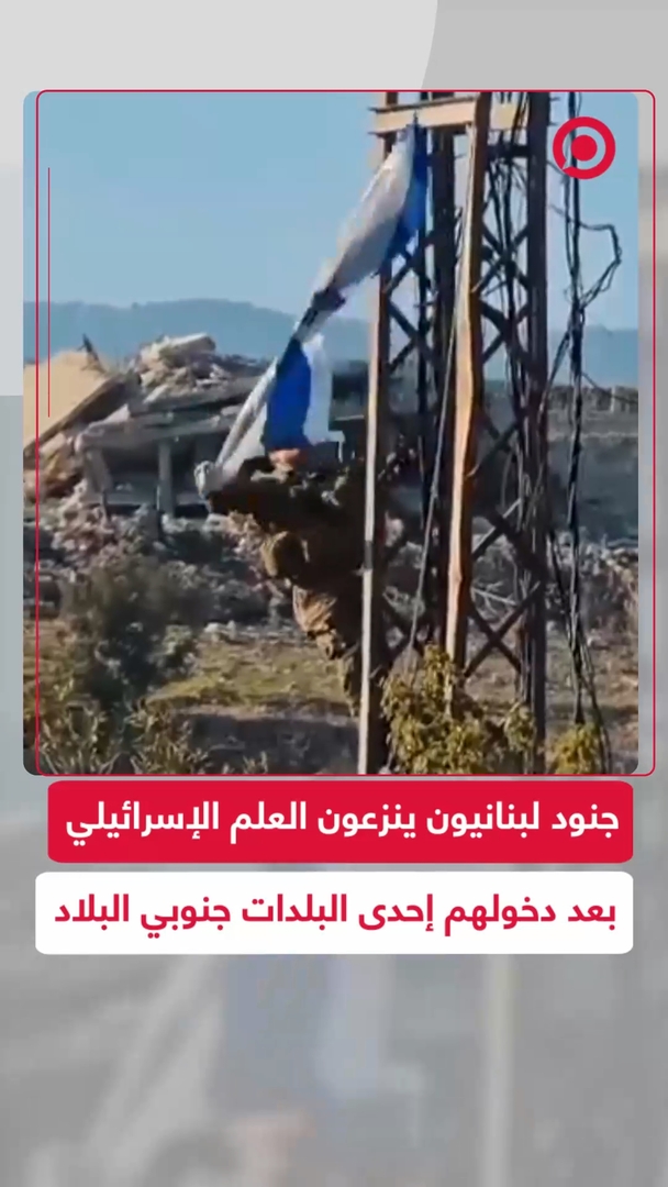 بعد انسحاب القوات الإسرائيلية.. جنود من الجيش اللبناني ينزعون علم إسرائيل بعد دخول إحدى بلدات الجنوب، في خطوة حظيت بتفاعل واسع بين المواطنين.