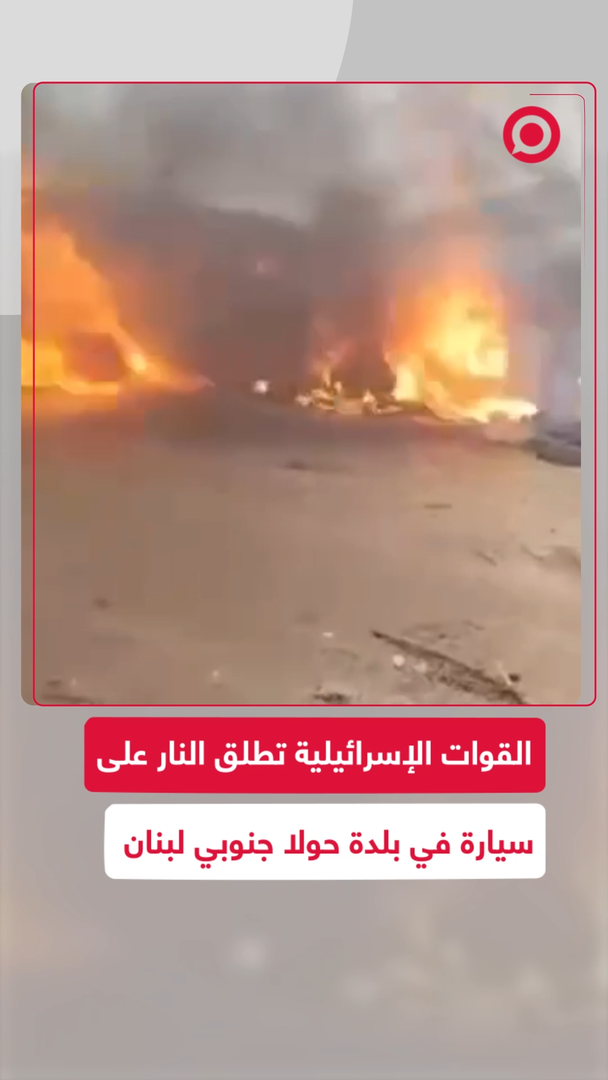 القوات الإسرائيلية تطلق النار على سيارة في بلدة حولا جنوبي لبنان مما أدى إلى اشتعال النيران فيها.