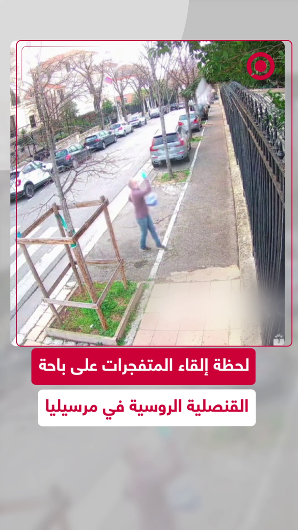 لحظة إلقاء المتفجرات على باحة القنصلية الروسية في مرسيليا