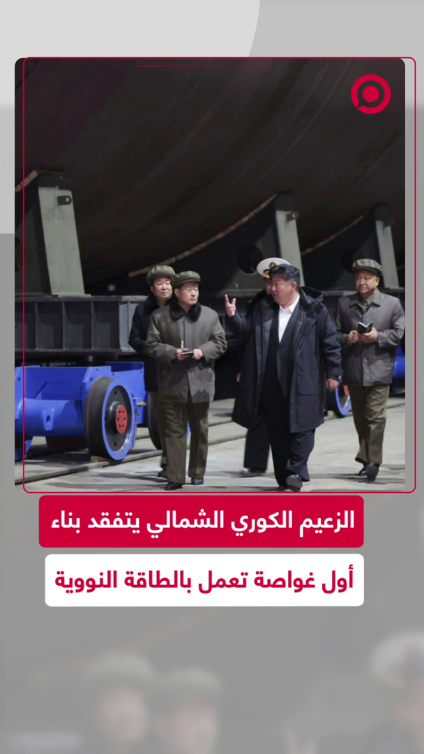 رفقة سفن حربية أخرى.. الزعيم الكوري الشمالي كيم جونغ أون، يتفقد عمليات بناء أول غواصة حاملة للصواريخ وتعمل بالطاقة النووية بالبلاد.