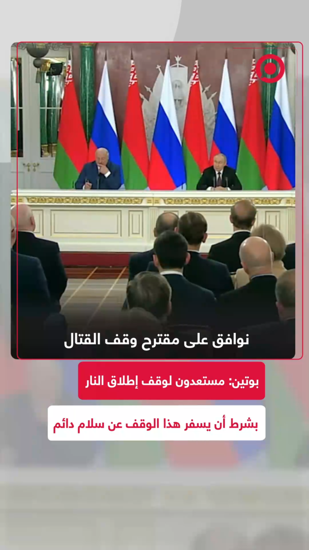 بوتين: مستعدون لوقف إطلاق النار بشرط أن يسفر هذا الوقف عن سلام دائم