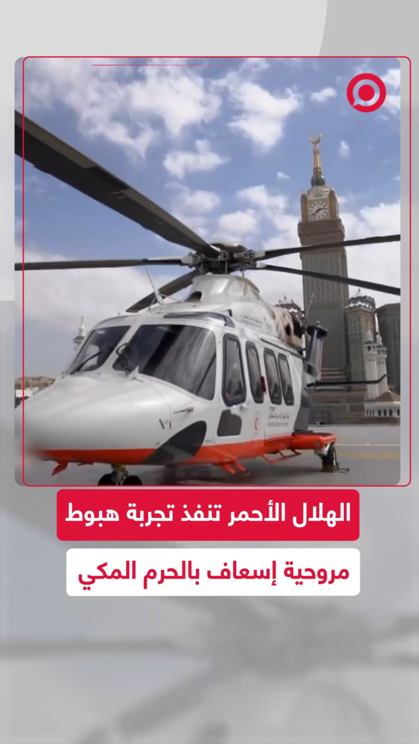 هيئة الهلال الأحمر السعودي تنفذ تجربة هبوط طائرة الإسعاف الجوي بمهبط الطائرات المروحية الواقع ضمن التوسعة الثالثة بـالحرم المكي، والذي تم تخصيصه لإجلاء الحالات المرضية ونقلها إلى المستشفيات في أوقات الذروة أثناء المواسم.