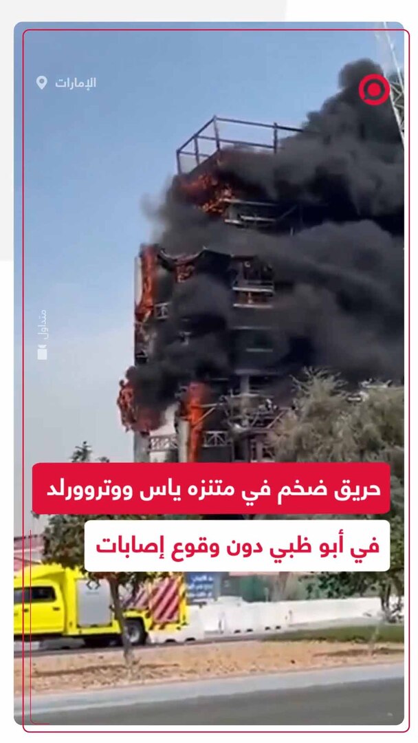 حريق ضخم في متنزه ياس ووتروورلد بأبو ظبي بدأ في موقع بناء مجاور والطوارئ الإماراتية تنجح بالسيطرة على الحريق دون وقوع أي إصابات.
