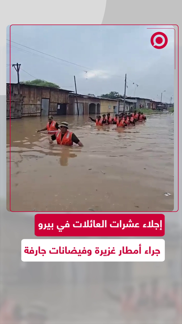 أمطار غزيرة وفيضان نهر زاروميلا يجبر عشرات العائلات على النزوح من منازلها، فيما يساعد الجيش البيروفي بعمليات الإنقاذ والإجلاء.