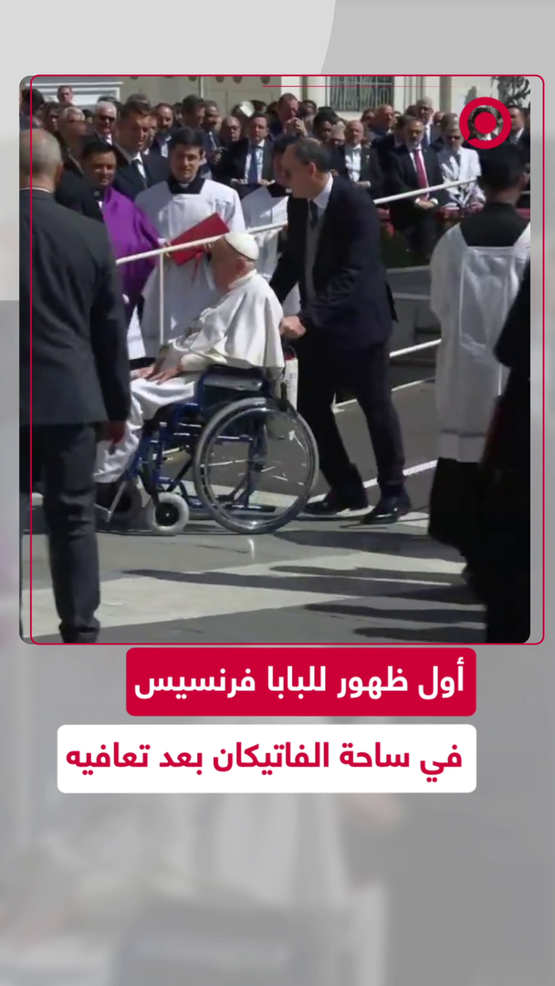 البابا فرنسيس يرحب بالحشود في الفاتيكان في أول ظهور له بعد أسبوعين من مغادرته المستشفى إثر إصابته بالتهاب رئوي خطير.