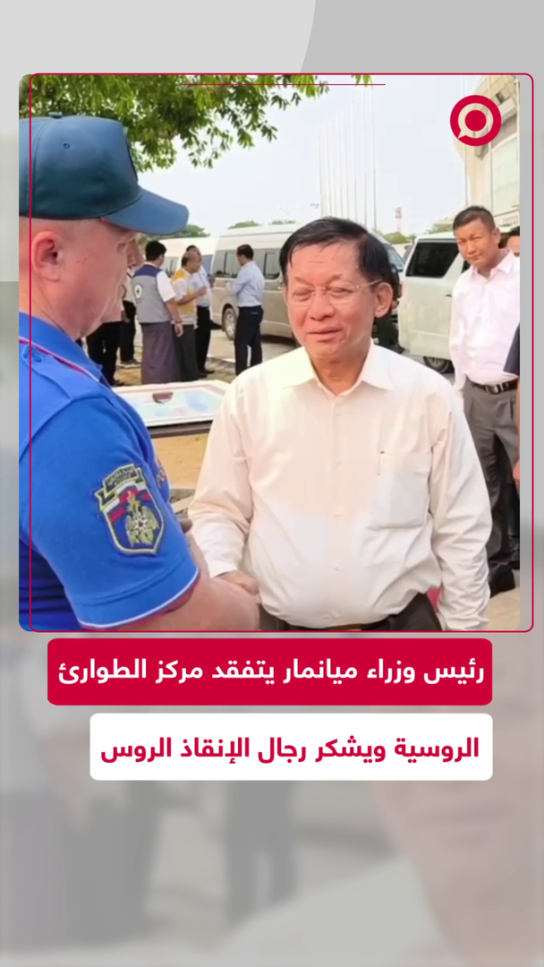 رئيس وزراء ميانمار، مين أونغ هلاينغ، أجرى زيارة تفقدية لمركز الطوارئ الروسي بمدينة ماندالاي معربا عن امتنانه لرجال الإنقاذ الروس الذين يساهمون بإزالة أنقاض الزلزال المدمر ويقدمون المساعدة للمتضررين.