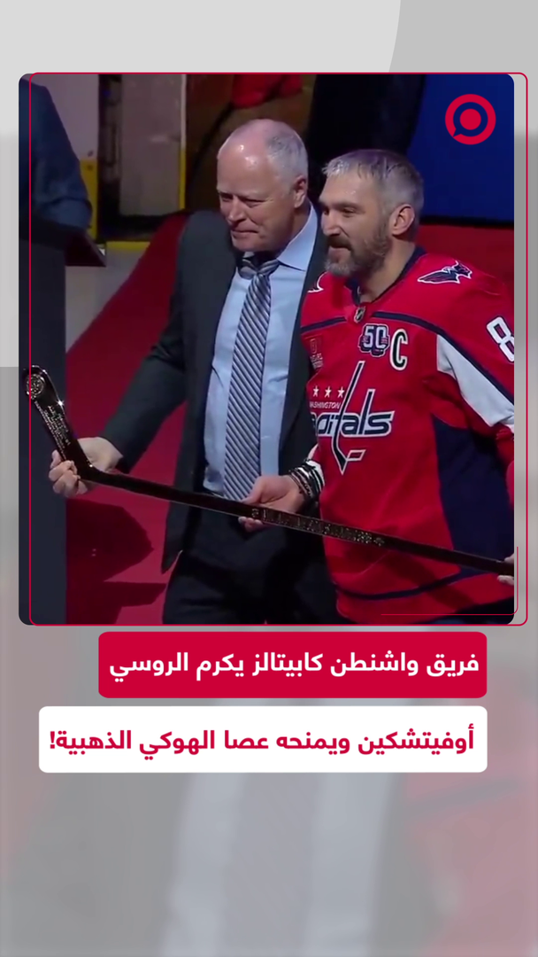فريق واشنطن كابيتالز للهوكي يكرم اللاعب الروسي ألكسندر أوفيتشكين بعد تحطيمه الرقم القياسي لعدد الأهداف في لعبة الهوكي ويقدم له عصا هوكي ذهبية!