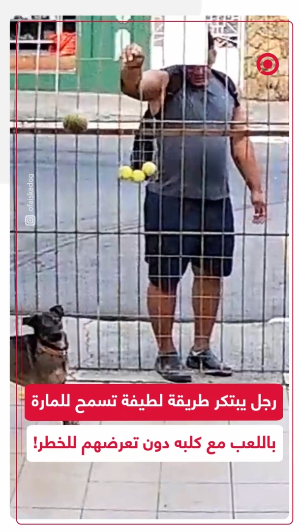 لمساعدتهم على اللعب معه بأمان 🐶.. رجل يضع كرات تنس خلف سياج حديدي، بحيث يتاح للمارة اللعب مع كلبه بطريقة لطيفة وآمنة دون اقتراب مباشر.