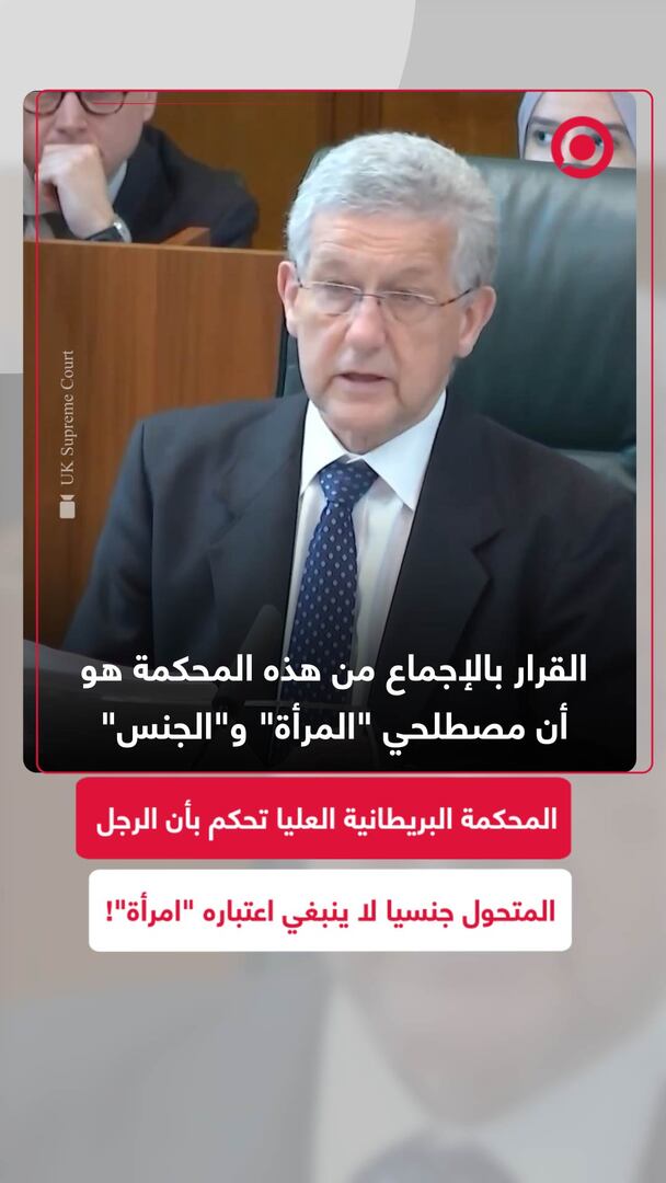 المحكمة العليا في بريطانيا تحدد تعريف "المرأة" بأنها أنثى بيولوجية، مما يعني أن الرجل المتحول جنسيا لا ينبغي اعتباره "امرأة"