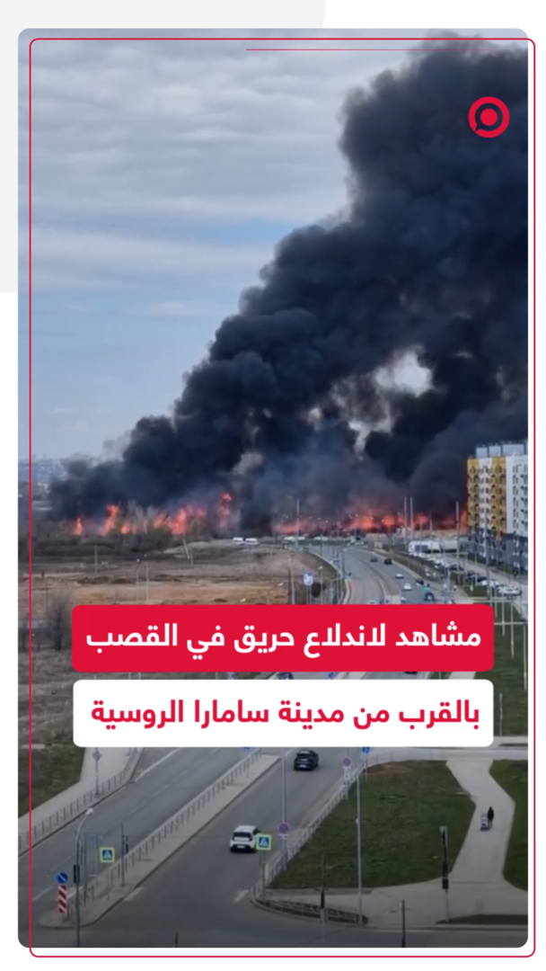 اندلاع حريق في القصب بالقرب من مدينة سامارا الروسية