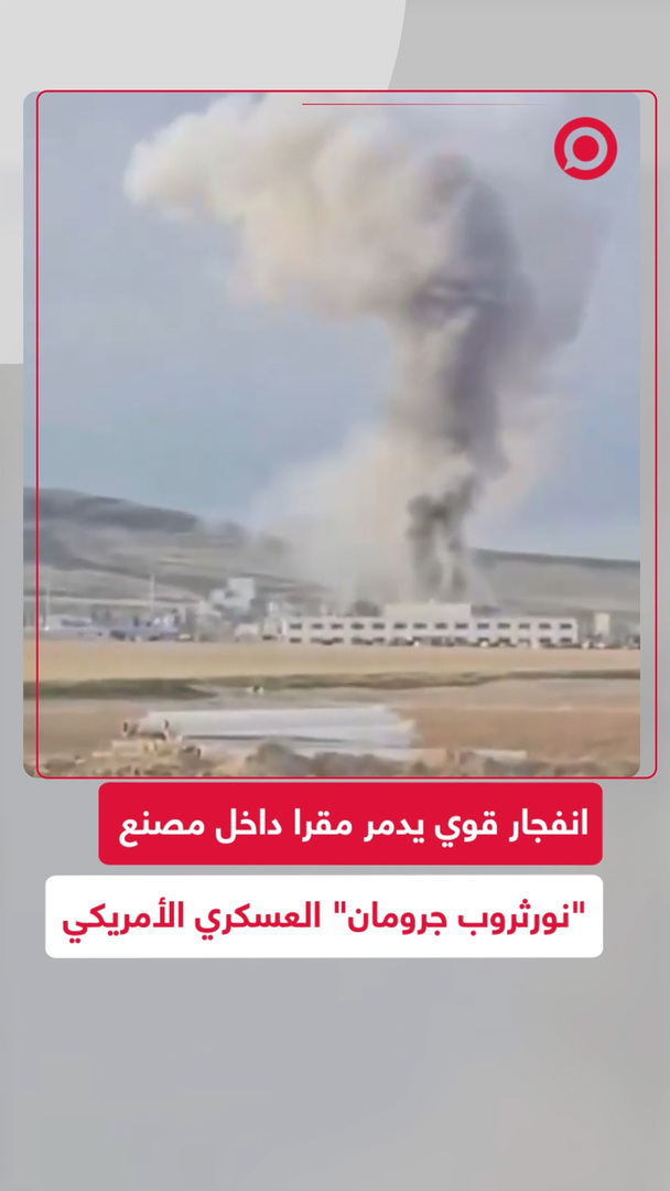 الولايات المتحدة.. انفجار قوي يدمر أحد مباني مصنع "نورثروب جرومان" العسكري في ولاية يوتا، الذي ينتج ويختبر محركات الصواريخ ووفقا للأنباء لم تقع أي إصابات كما لا تزال أسباب الانفجار غير معروفة.