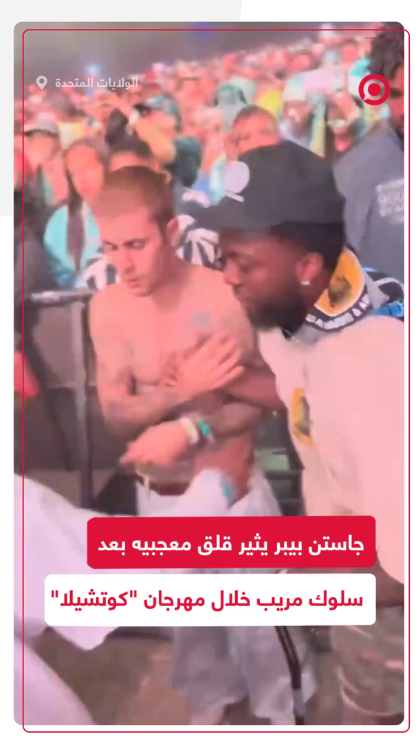 سلوك مريب من مغني البوب الكندي الشهير جاستن بيبر البالغ من العمر 31 عاما خلال مهرجان "كوتشيلا" 2025 مما أثار قلق معجبيه