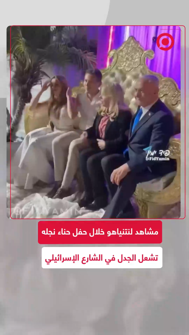 مشاهد لمشاركة رئيس الوزراء الإسرائيلي بنيامين نتنياهو وزوجته سارة في حفل حناء نجلهما الأصغر أفنير بالتزامن مع المظاهرات المستمرة في تل أبيب تثير جدلا واسعا وانتقادات في الشارع الإسرائيلي.