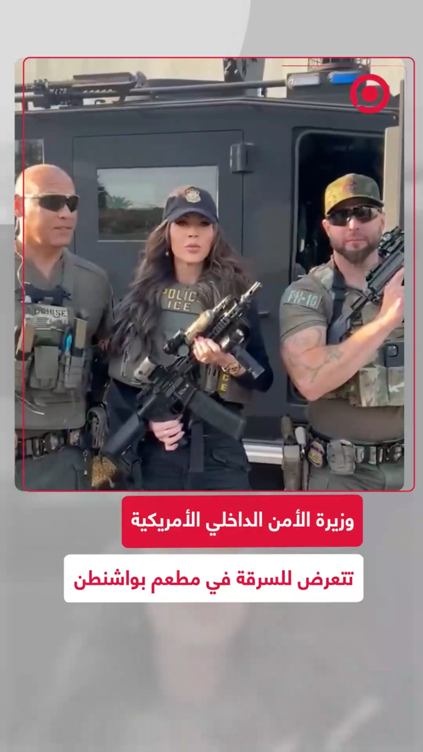 وزيرة الأمن الداخلي الأمريكية كريستي نويم تتعرض للسرقة أثناء تناولها العشاء في مطعم وسط واشنطن. اللص قام بسرقة حقيبتها التي احتوت رخصة قيادتها، أدويتها، مفاتيح شقتها، جواز سفرها، بطاقة دخول وزارة الأمن الداخلي، أدوات زينة، شيكات فارغة، ونحو 3 آلاف دولار.
