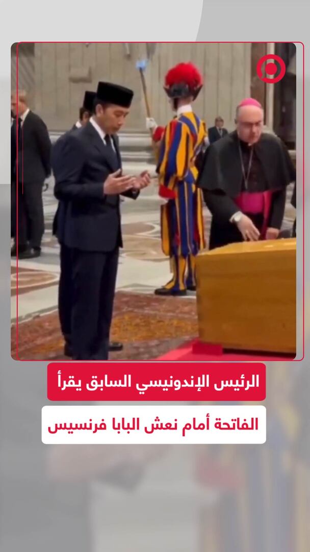 مقطع فيديو يثير موجة من التفاعل حيث قام الرئيس الإندونيسي السابق جوكو ويدودو، بقراءة سورة الفاتحة أمام نعش البابا فرنسيس