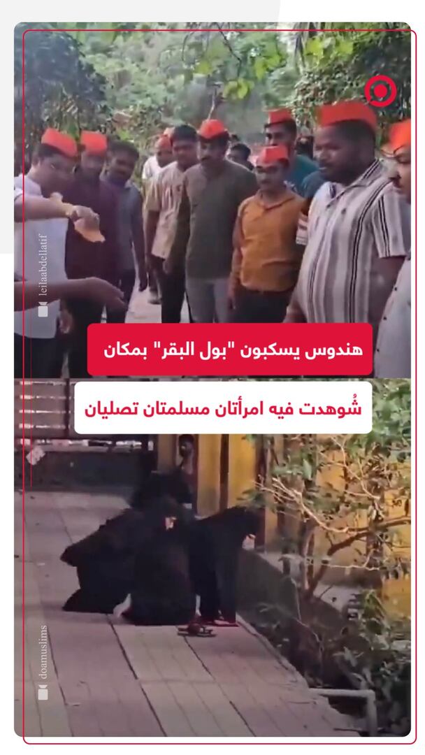 هندوس يسكبون "بول البقر" بمكان شُوهدت فيه امرأتان مسلمتان تصليان