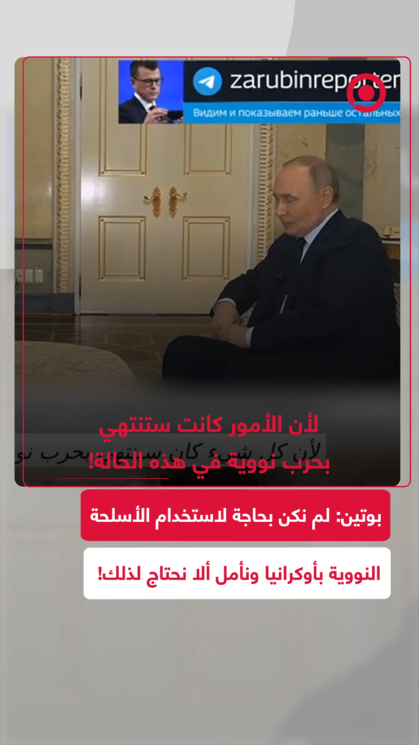 الرئيس الروسي فلاديمير بوتين، يؤكد أن روسيا لم تكن بحاجة إلى استخدام الأسلحة النووية خلال العملية العسكرية الخاصة في أوكرانيا، مؤكدا أن موسكو تأمل في عدم الحاجة إلى ذلك في المستقبل.