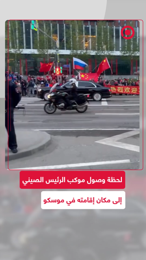موكب الرئيس الصيني، شي جين بينغ، يصل إلى مكان إقامته في العاصمة الروسية موسكو، حيث توافد العشرات من الجالية الصينية للترحيب برئيس بلادهم.