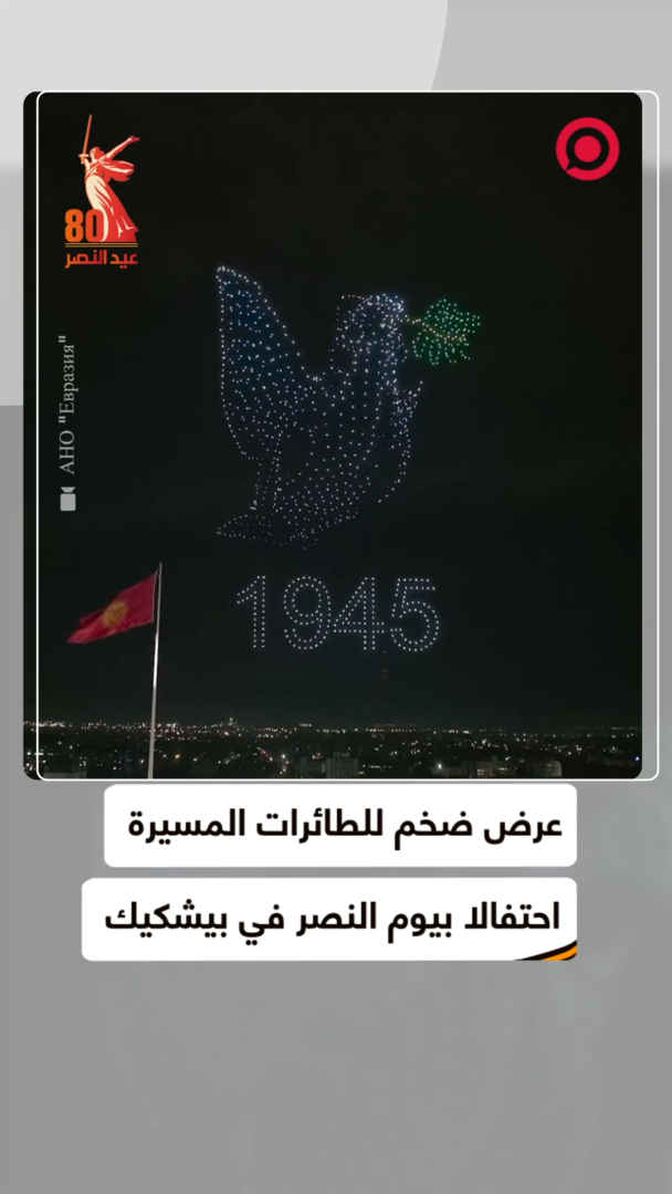 احتفالا بالذكرى الـ80 للنصر في الحرب الوطنية العظمى.. عاصمة جمهورية قيرغيزستان، بشكيك، تقيم عرضا ضخما للطائرات المسيرة باستخدام مئات الدرونات المصطفة في السماء على هيئة رموز مرتبطة بعيد النصر.