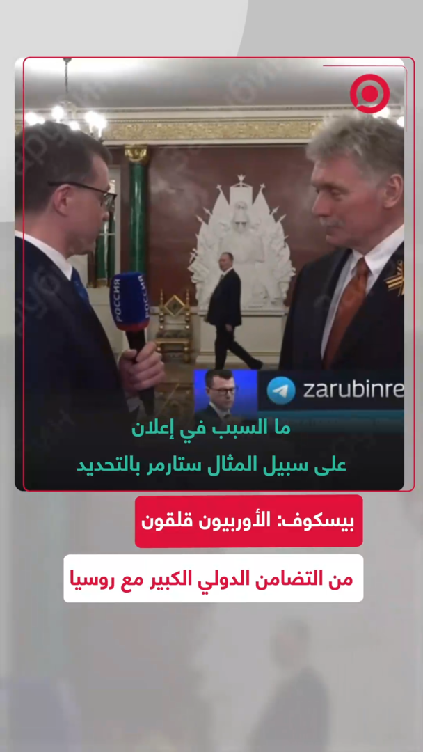 بيسكوف: الأوربيون قلقون من التضامن الدولي الكبير مع روسيا
