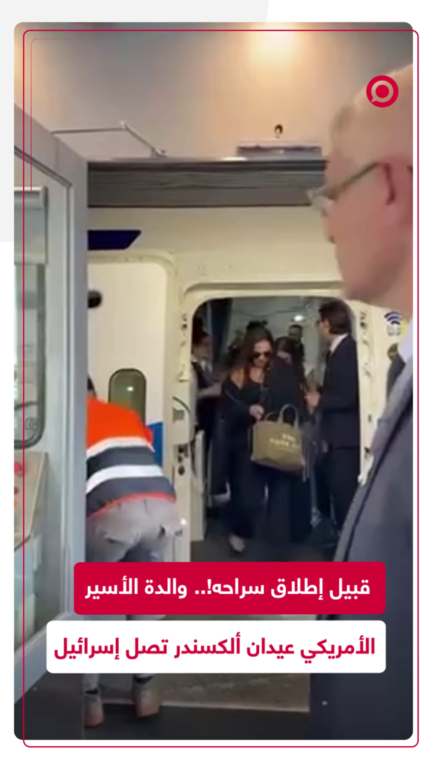 مشاهد متداولة تظهر اللحظات الأولى لوصول والدة الأسير الأمريكي الإسرائيلي عيدان ألكسندر إلى إسرائيل، قبيل إطلاق سراحه من قبل حركة "حمـ،ـاس" في غزة.