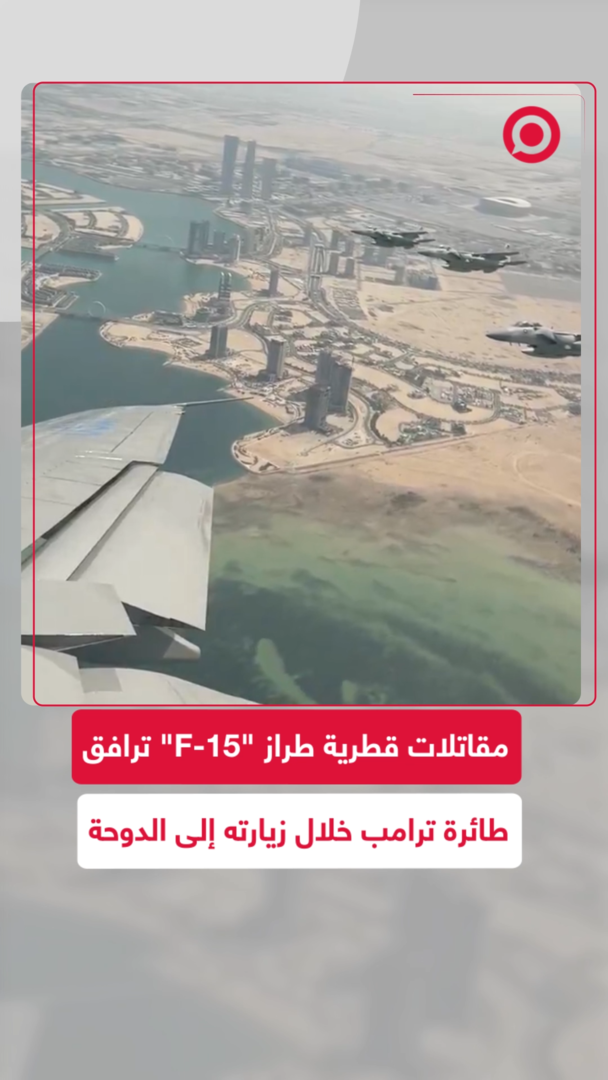 مقاتلات قطرية طراز "F-15" ترافق طائرة الرئيس الأمريكي دونالد ترامب إلى الدوحة.