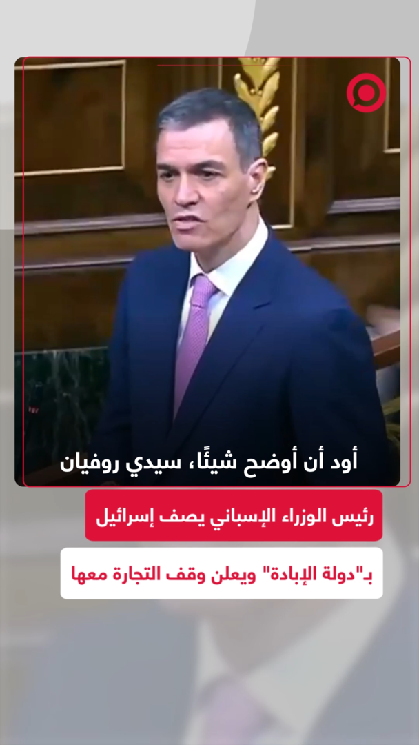 رئيس الوزراء الإسباني بيدرو سانشيز، يصف إسرائيل بأنها "دولة ترتكب إبادة جماعية"، حيث أعلن أن الحكومة الإسبانية لن تستمر في التعاملات التجارية مع إسرائيل، مما أغضب الخارجية الإسرائيلية التي استدعت السفيرة الإسبانية لجلسة احتجاج.