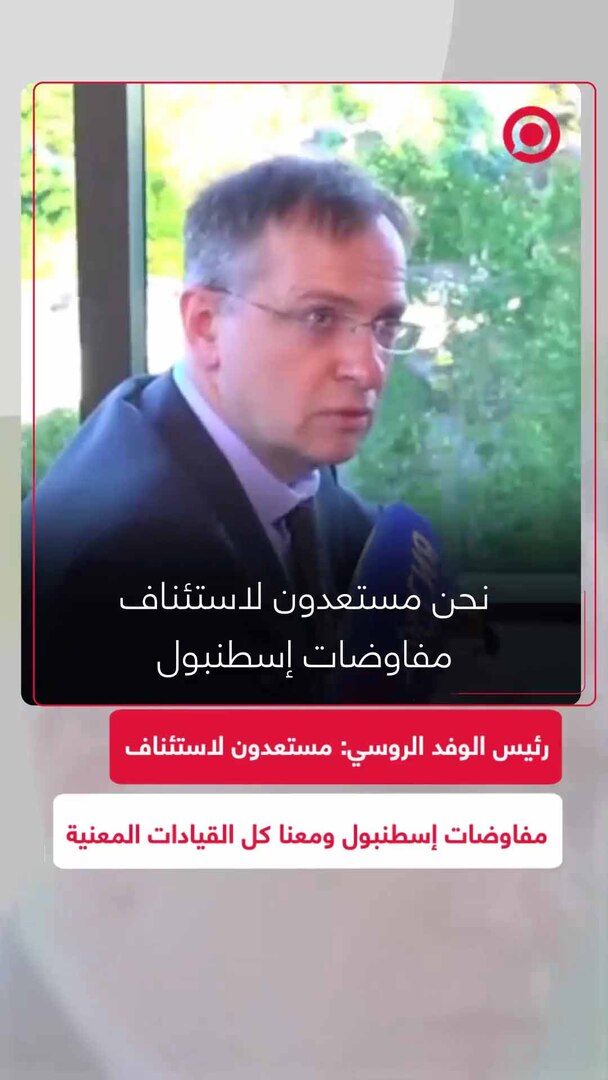 "نحن مستعدون لاستئناف مفاوضات إسطنبول".. فلاديمير ميدينسكي رئيس الوفد الروسي لمفاوضات إسطنبول، يؤكد أن الجانب الروسي على أتم الاستعداد لاستئناف المفاوضات التي كانت قد انقطعت عام 2022 في إسطنبول