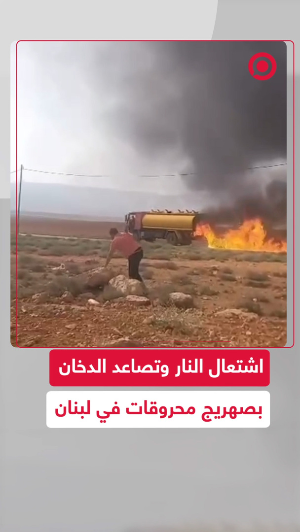اشتعال النار وتصاعد الدخان بصهريج محروقات في لبنان